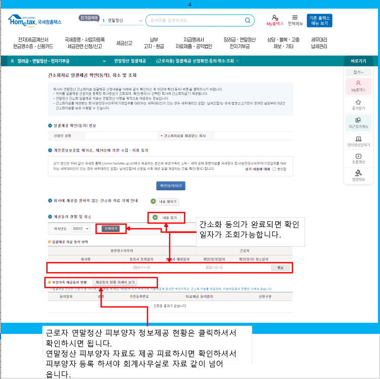 | 2023년 12월1일~2024년 1월 19일 | 근로자 일괄제공 신청확인 동의 |
